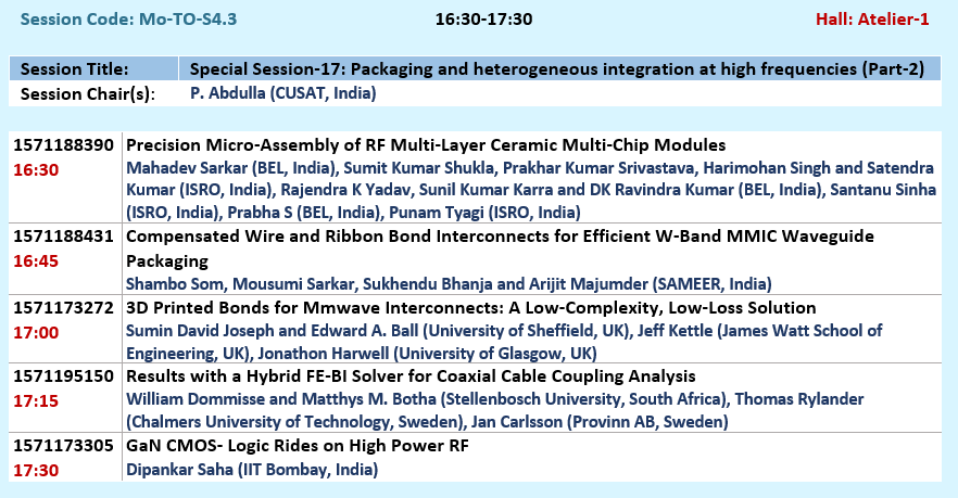 Special Session-17: Packaging and heterogeneous integration at high frequencies (Part-1)
