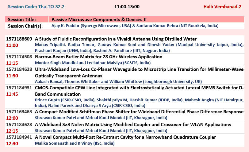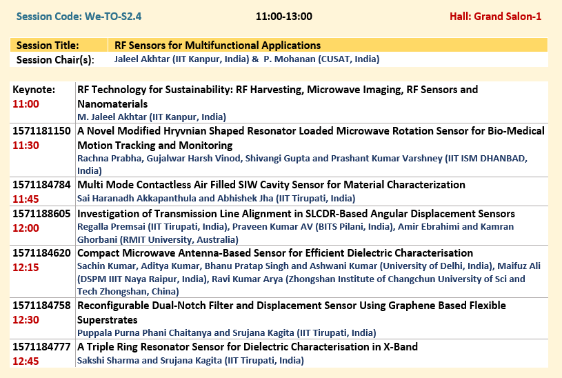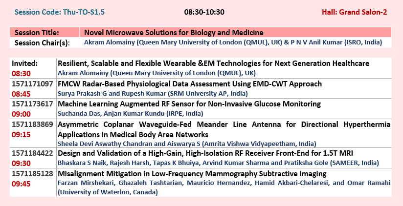 Special Session-6: Applications of RF/Microwave in Biomedical and Biosensing Devices