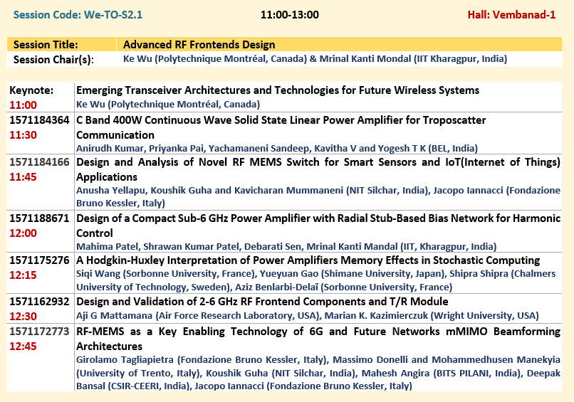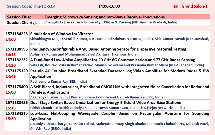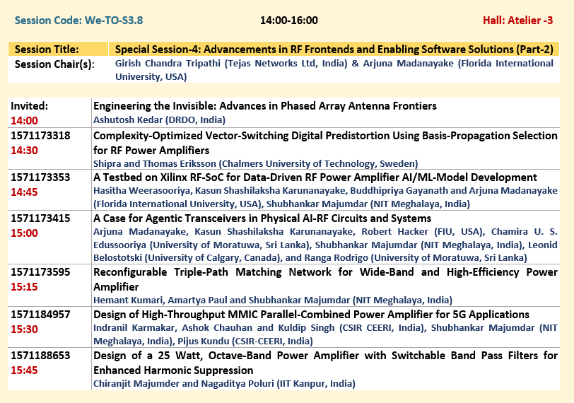 Special Session-4: Advancements in RF Frontends and Enabling Software Solutions (Part-2)