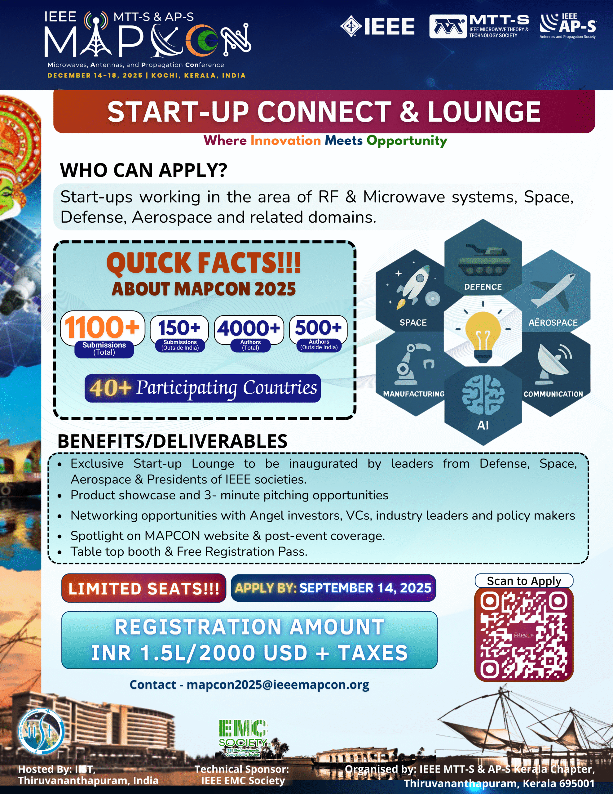 IEEE MAPCON 2025 proudly introduces its Start-up Lounge, a dynamic and high-visibility platform designed to promote cutting-edge start-ups in the fields of microwaves, antennas, remote sensing, and propagation. This initiative aims to bridge the gap between emerging ventures and key stakeholders by bringing together entrepreneurs, mentors, investors, industry leaders, and policy-makers to catalyze innovation from concept to commercialization.